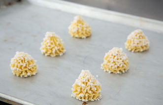 Pomme Duchesse – creamy whipped potato swirls.